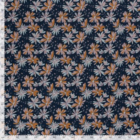 Tissu sweat imprimé fleurs marine