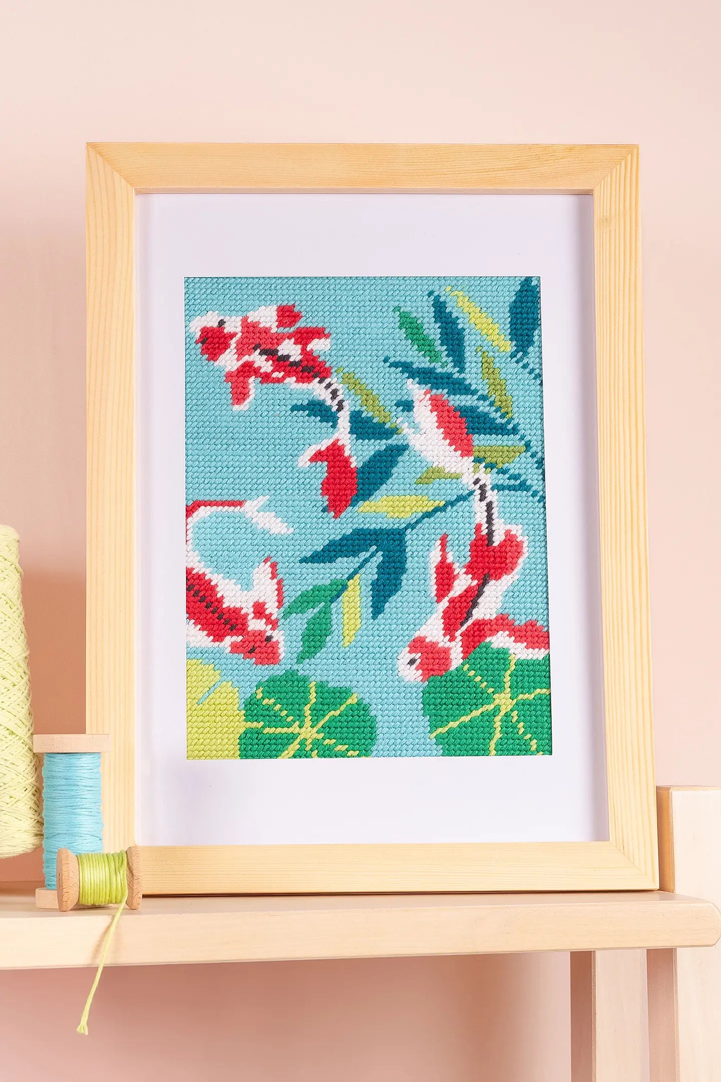 Découvrez la quiétude d'un bassin à carpes grâce à une variété de pastels frais et de couleurs primaires riches. Cette toile Pénélope pré-imprimée de haute qualité, en 10 points, est facile à réaliser au demi-point de croix.
