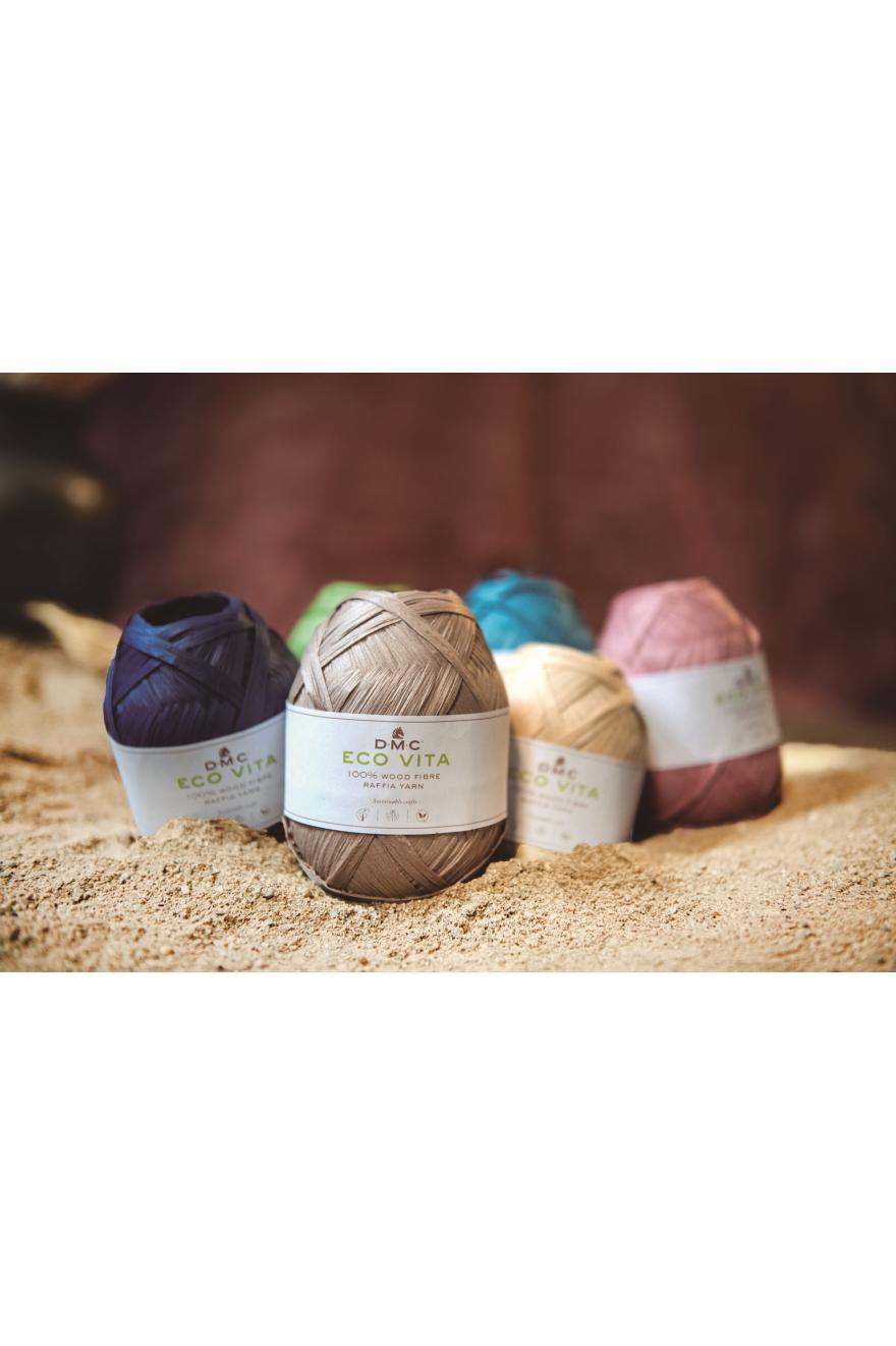 Le fil Eco Vita Raffia composé à 100 % de fibres de bois, est entièrement biodégradable, doux au toucher, antistatique, durable et particulièrement absorbant. Sa texture souple et très légère en fait un matériau facile à manipuler, parfaitement adapté aux techniques de crochet, tricot et tissage.