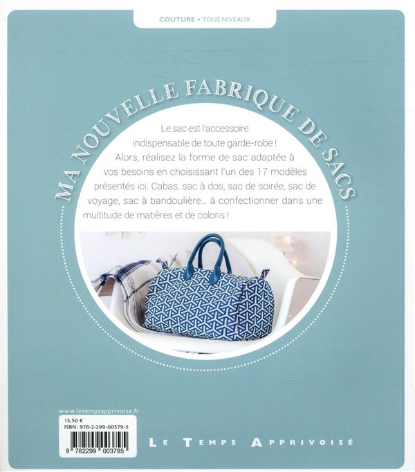 Confectionnez les sacs de vos rêves selon vos besoins : sac cartable pour le travail, sac ultra-tendance pour un rendez-vous amoureux, sac très chic pour les soirées, sac besace pour les balades, sac à dos pour le week-end, sacs à bandoulières ou à anses courtes et même organisateur de sacs... une multitude de modèles sont présentés.
